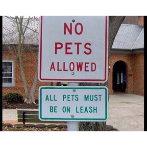Although these signs are color coded correctly based on society it still is a bit confusing because it says no pets allowed but then imply’s that pets are allowed if they are leashed.